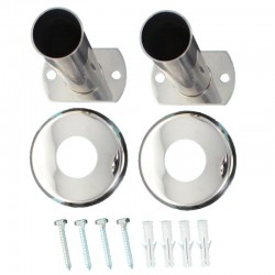 Ancrage articulé universel (référence ANCDRAP) pour échelle de piscine comprenant 2 ancrages, 4 tirefonds, 4 chevilles et 2 enjoliveurs. Cet ancrage est compatible avec les échelles de piscine ayant un diamètre de tube intérieur de 43 mm.